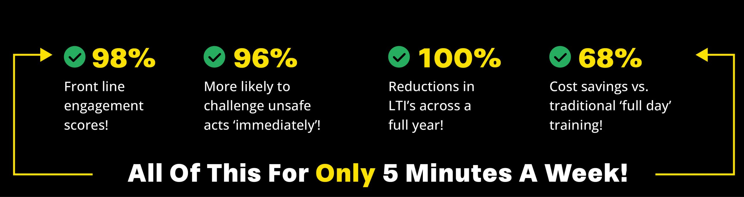 Think Feel Act. The ONLY science-backed behavioural safety programme proven to break through safety plateaus while also improving operations, communication and culture from the FIRST HOUR, while getting more from your previous programmes. Example KPIs below…